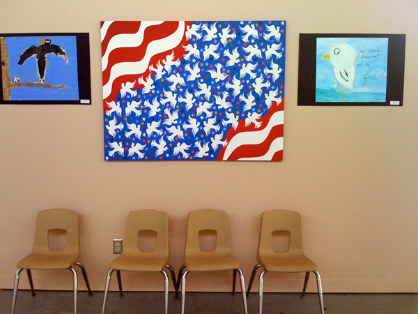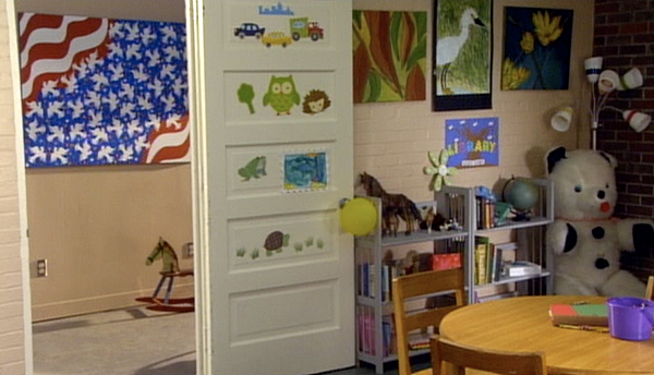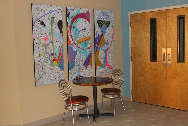 Metin's original painting "Mardi Gras 2" in a scene from the Youth Activities Center of The Army Wives TV Show.
