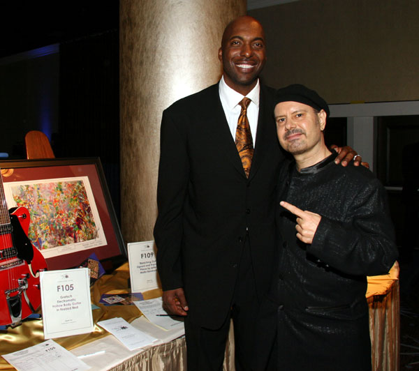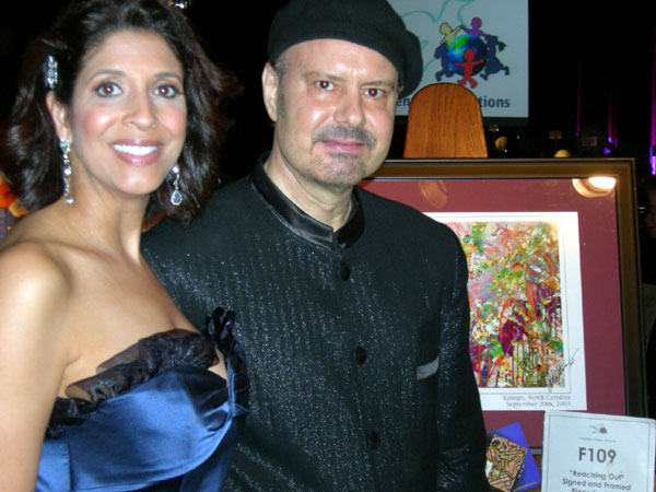 JOHN SALLY shares a warm moment with Metin in front of his REACHING OUT autographed print