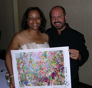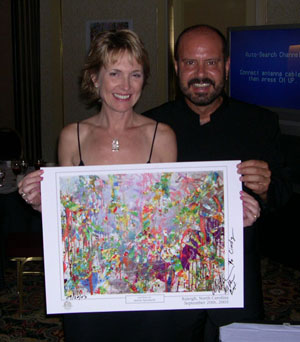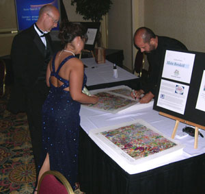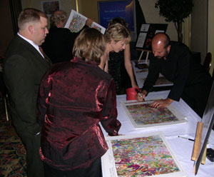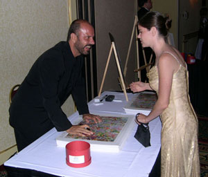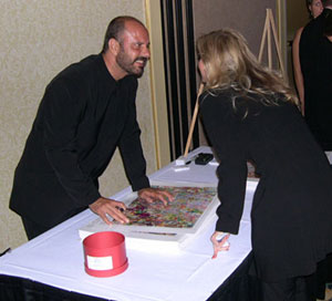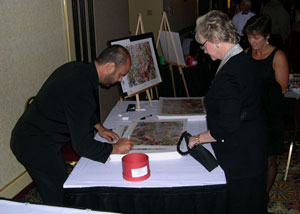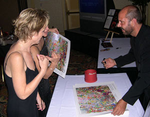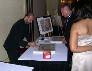 Metin signing his collectible artwork for charity ...
